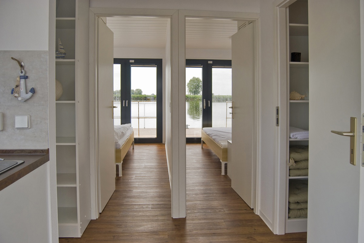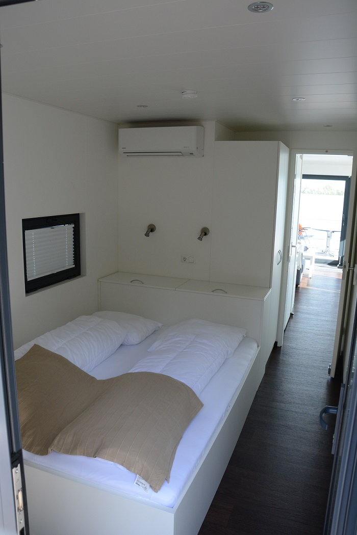 | Schlafen Sie wie Zuhause Unser Hausboot hat zwei Schlafzimmer mit jeweils einem großen Doppelbett (160x200cm) und eine Doppelschlafcouch im Wohnzimmer. Sie können mit bis zu 4 Erwachsenen sehr komfortabel übernachten und für Kinder oder kurzfristigen Besuch steht eine hochwertige Schlafcouch im Wohnzimmer zur Verfügung. |