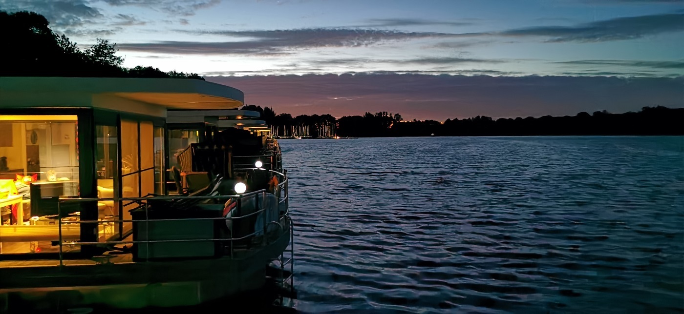 Ein Blick von der Bugterrasse, im Sommer ausschließlich Frühaufstehern vorbehalten